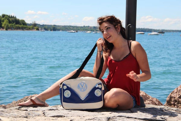 Deze unisex koerierstas in landschapsformaat heeft het ontwerp van de veelgeprezen VW T1 Bus-voorkant - klassiek en leuk!