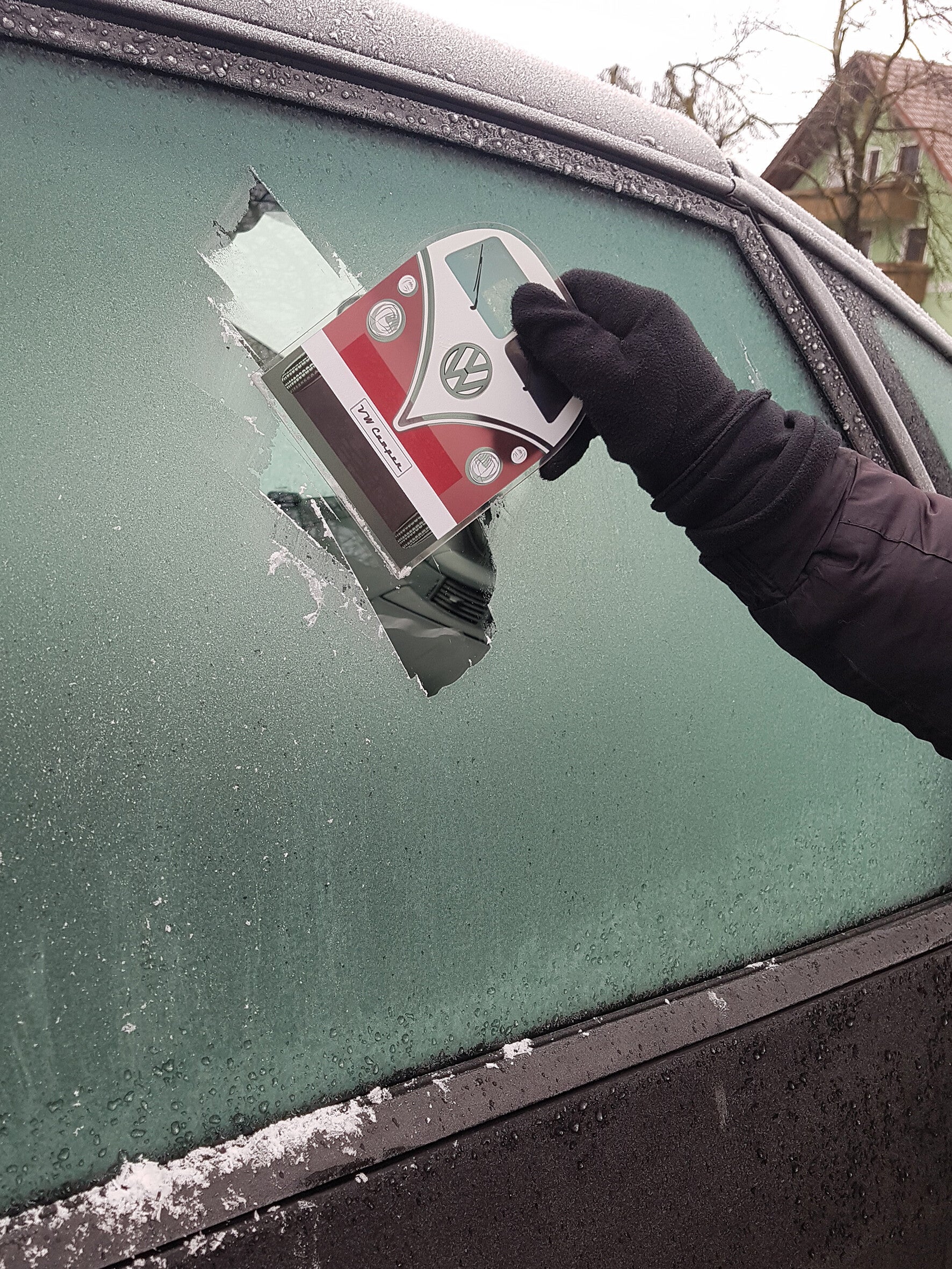 De styling en de nostalgische vorm van de ijskrabber zijn gebaseerd op het cultautomodel VW T1 Bulli Bus. Het is vrolijk en roept een gevoel van nostalgie op naar vervlogen jaren. In vooraanzicht in hippiestijl is de rood-witte kras versierd met kleine details. De schraper is ideaal als bedankje. Als souvenir en fanartikel voor Duitsland voor VW-liefhebbers. Ze voegen een nostalgisch hoogtepunt toe. Een trendy accessoire voor in de auto.
