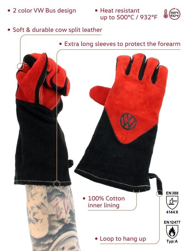 VW T1 Bus barbecue handschoenen in geschenkverpakking rundleer (paar) Rood
