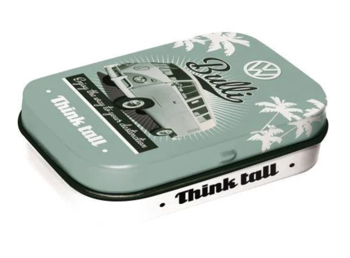 Sugar free peppermints inside, box 4 x 6 x 1,6 cm