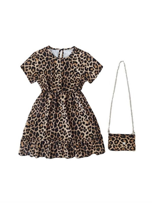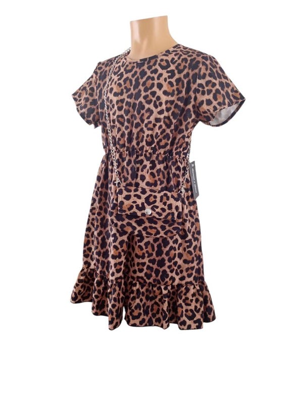 Leuk jurkje met panter print en bijpassende tasje.